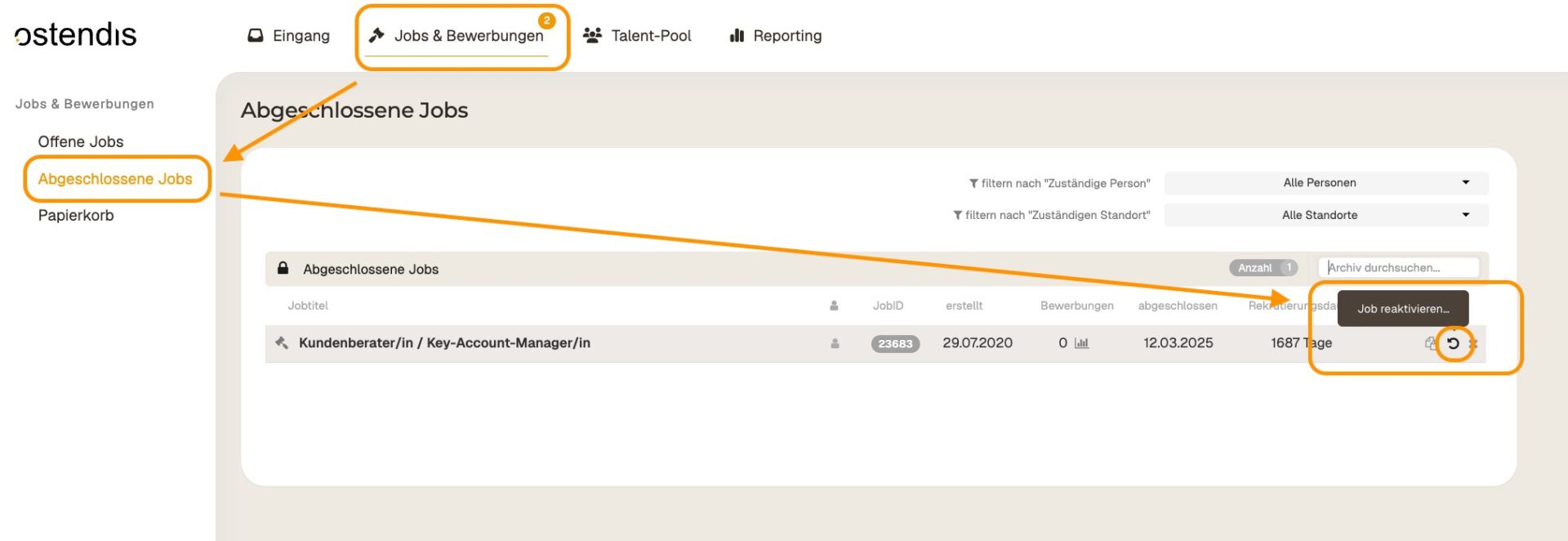 💡 Tip: This way, you can flexibly manage jobs and candidates and continue to work on them even after reactivation.
