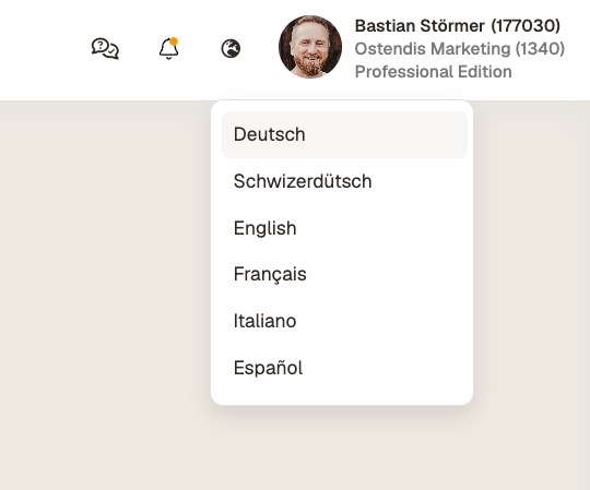 The language can be individually set in the account, allowing users to use Ostendis in their preferred language.