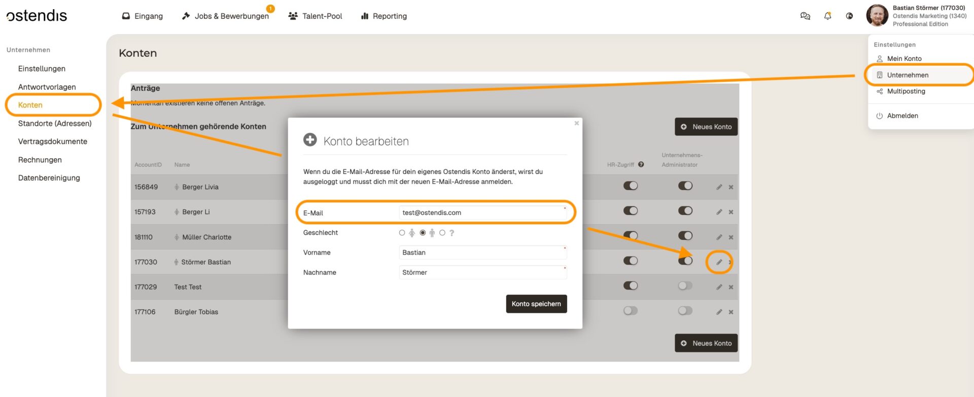 Alle Infos zu Passwort, Benutzern & mehr rund um dein Ostendis-Konto.