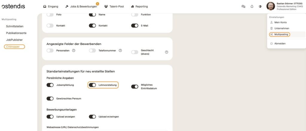 Se vuoi obbligare i candidati a indicare le loro aspettative salariali nel CVdropper, puoi attivare questa funzione nelle impostazioni.