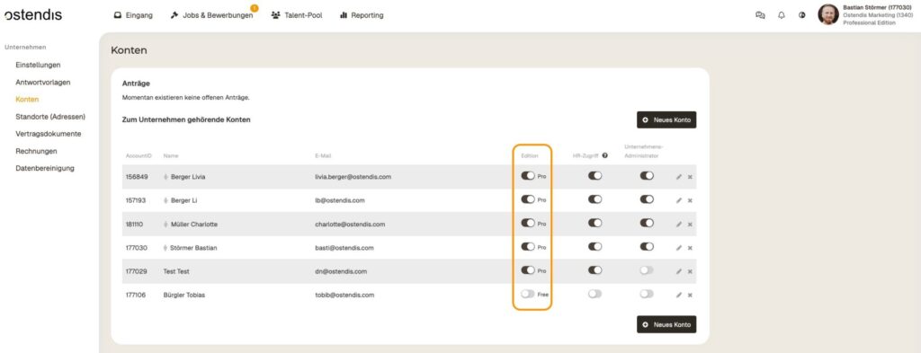 Il passaggio dalla Free-Edition alla Pro-Edition consente a te o ai tuoi dipendenti di accedere a funzionalità avanzate come la gestione delle offerte di lavoro, le azioni di massa e le autorizzazioni HR. Ecco come effettuare il passaggio per te stesso o per un membro del team.