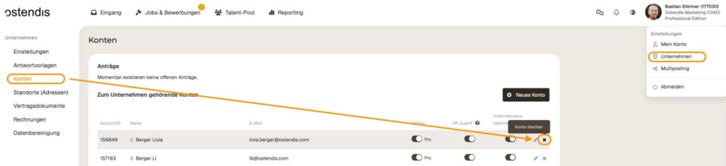IMPORTANTE: Prima di poter eliminare definitivamente l’ultimo account Professional, devono essere eliminati tutti gli eventuali account Free.