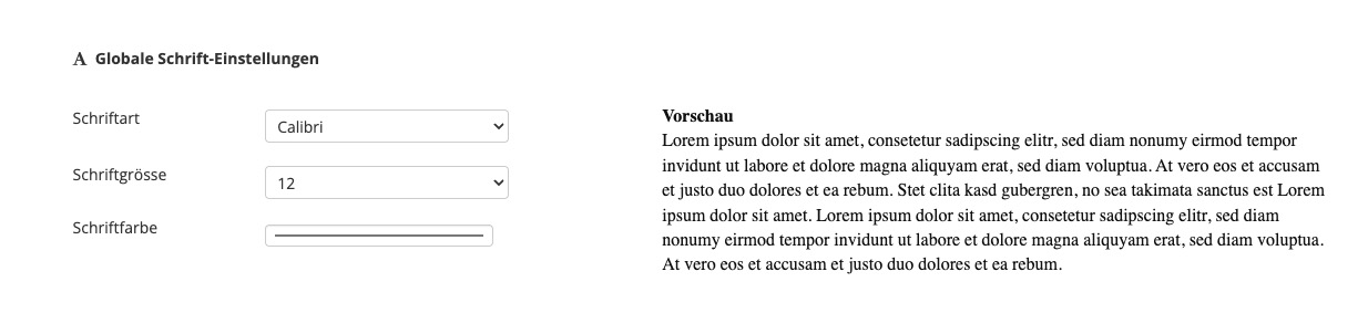 Gehe dafür in Ostendis zu Unternehmen -> Einstellungen und scrolle zum Abschnitt „Globale Schrift-Einstellungen“. Dort kannst du die gewünschte Schriftgrösse für alle Antwortvorlagen definieren.